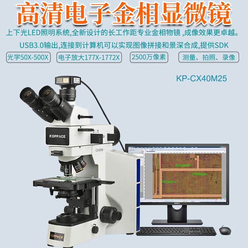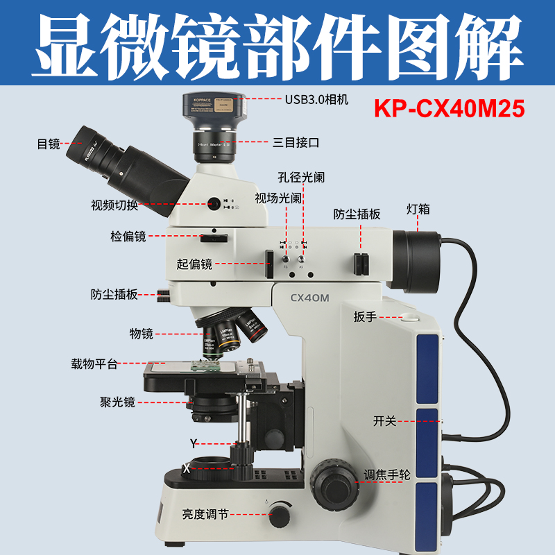 | 注意 | 1、本产品不含电脑; 2、本产品是通过USB接口连接到电脑上使用,我们提供免费的专业图像软件; 3、本产品为USB3.0接口,需要与计算机连接; 4、本产品有上下照明系统; 5、如需100x物镜,请联系客服。 |