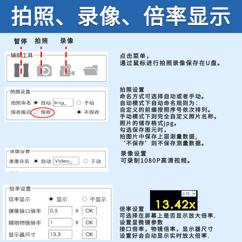 倍率显示 | 实时显示放大倍率 |