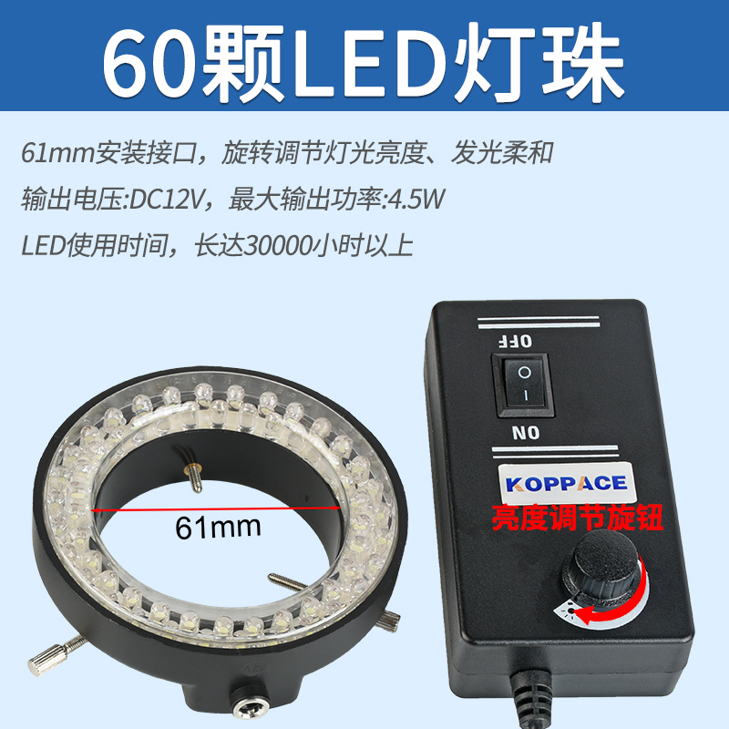 LED光源 | 60颗灯珠,内径61mm,输入电压AC100-240V,最大输出功率4.5W,电压12V |