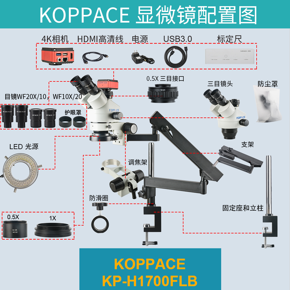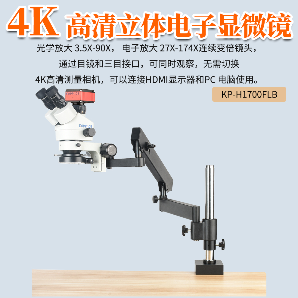 KOPPACE 27X-174X 三目立体测量显微镜 4K高清相机 万向调节支架