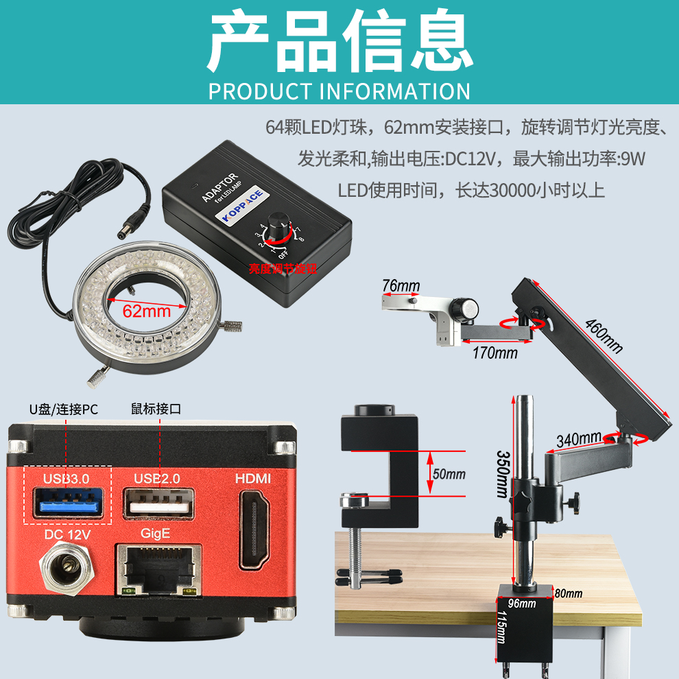 注意 1. 本产品为HDMI/LAN /USB3.0输出,通过HDMI线直接连接到显示器上,或通过网线/USB3.0接口连接到电脑上使用,连接电脑可以图像拼接,景深合成。