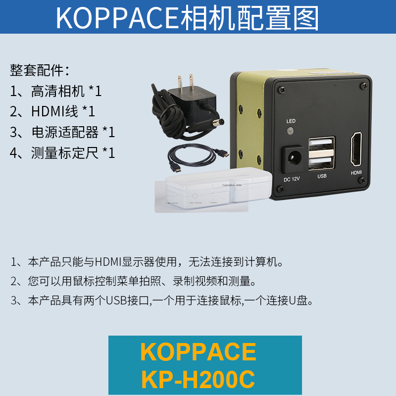 装箱单 | 1、高清相机 *1 2、HDMI线 *1 3、电源适配器 *1 4、标定尺 *1 |