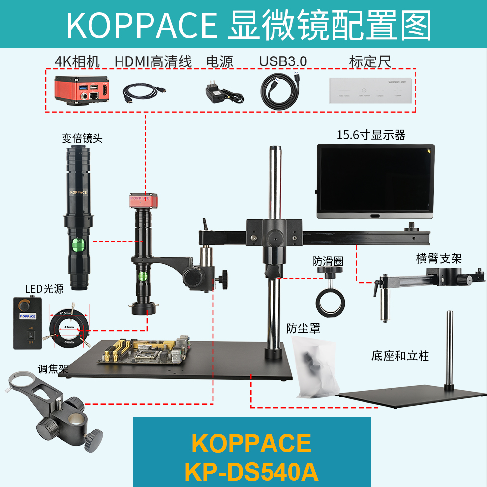 | 包装清单 | 1. 立柱和底板 *1 2. 调焦架 *1 3. 防滑圈 *1 4. 连续变倍镜头 *1 5. 横臂支架 *1 6、LED环形灯 *1 7、防尘罩 *1 8、4K相机 *1 9、HDMI线 *1 10、相机电源适配器 *1 11、校正尺 *1 12、USB 3.0线 *1 13、15.6寸显示器 *1 14、挂杆 *1 |