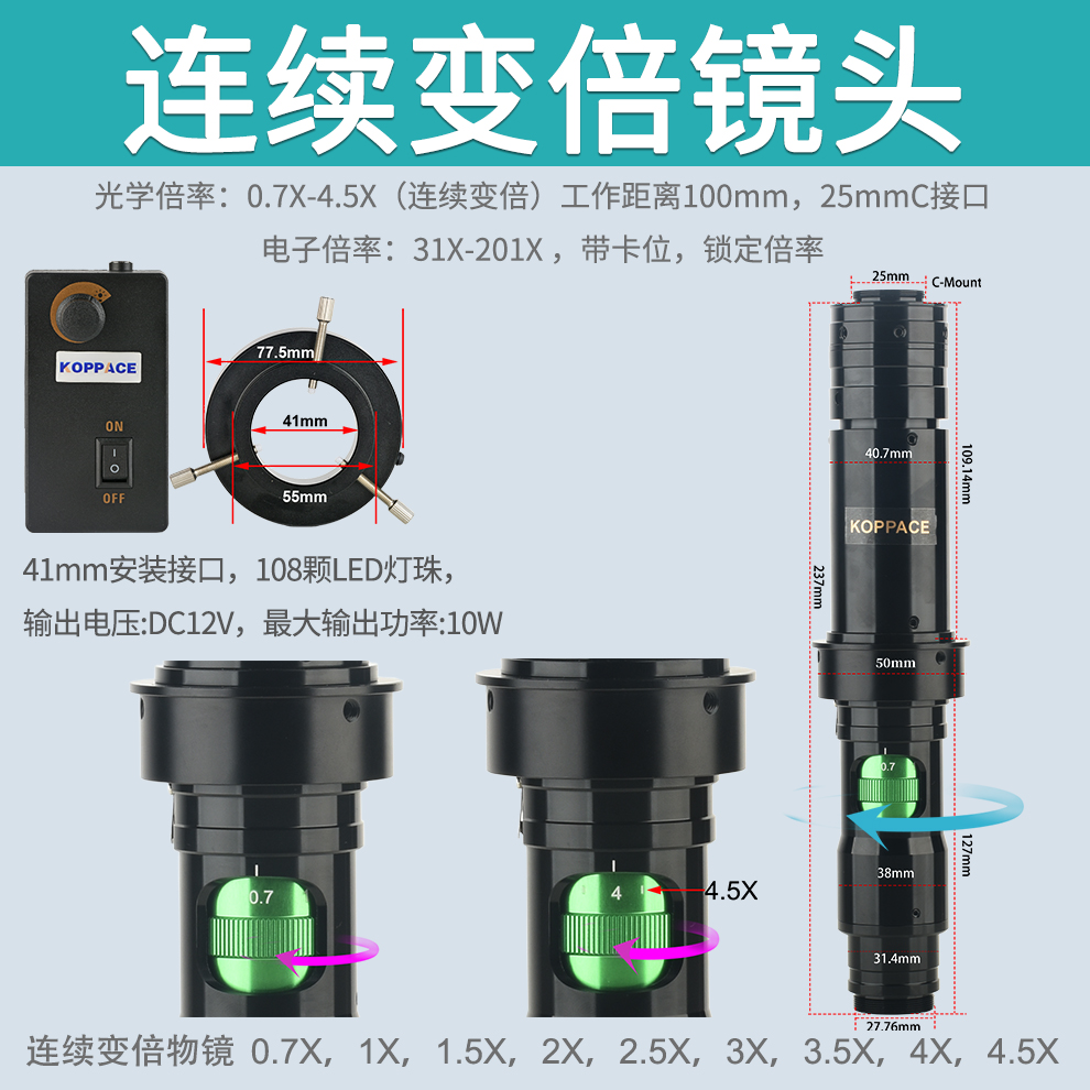 | 物镜 | 0.7X-4.5X 连续变倍物镜 |