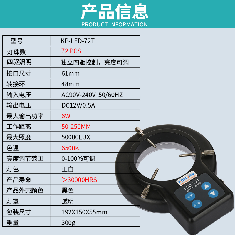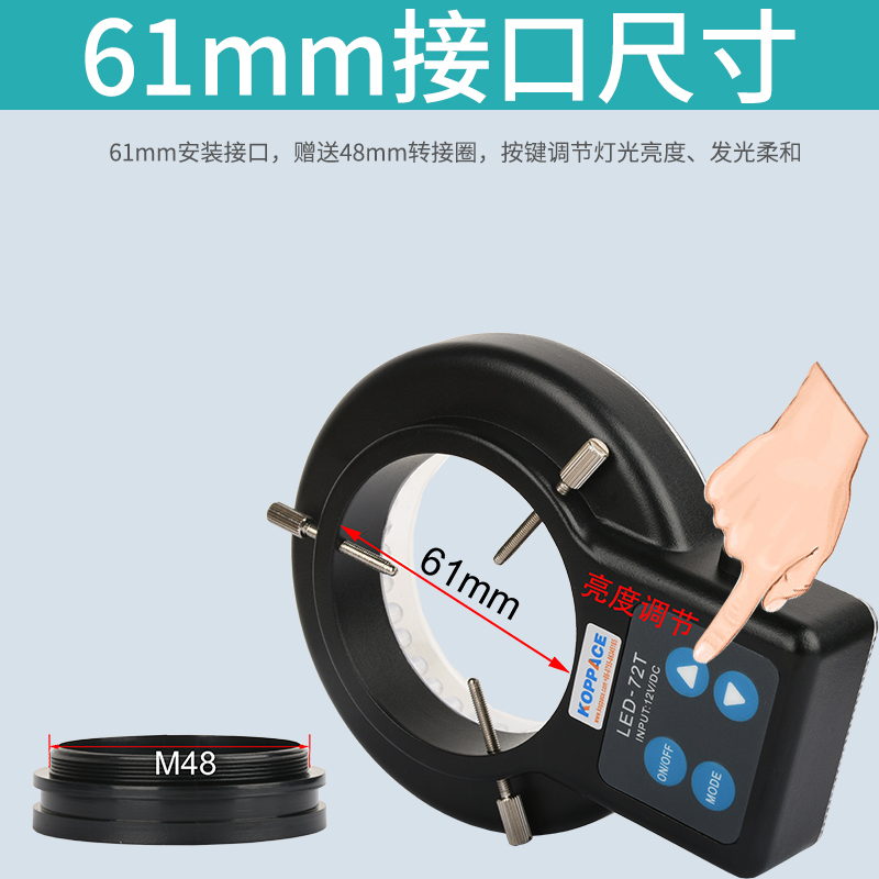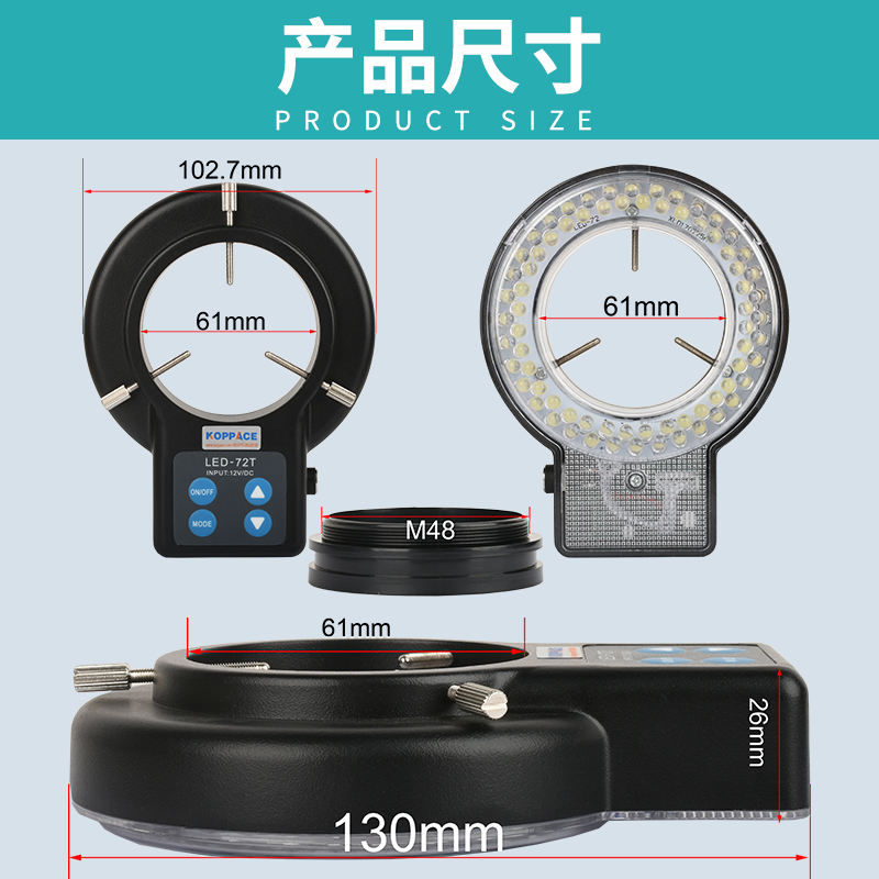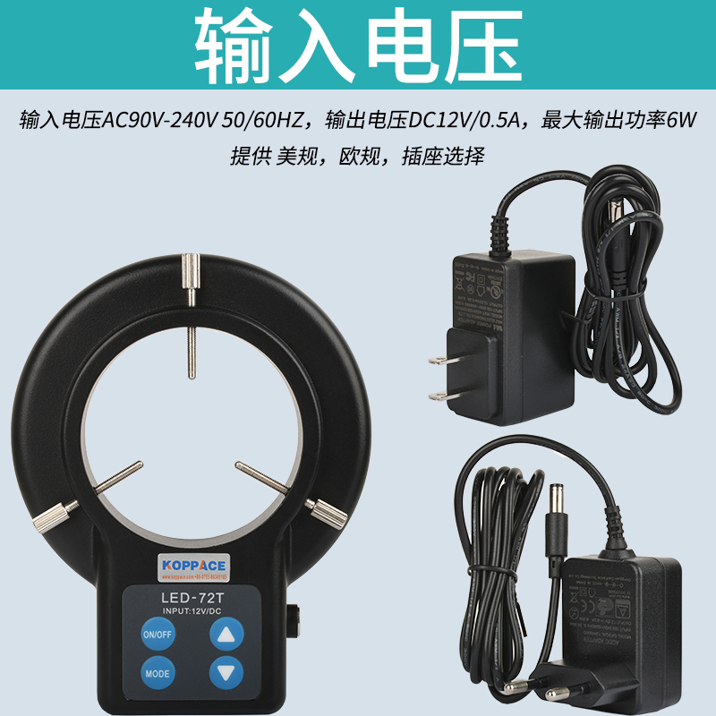 | 包装清单 1、LED 环形灯 *1 2、电源适配器12V/0.5A *1 3、48mm环形适配器 *1 我们将根据客户所在国家/地区提供合适的欧盟插头、美国插头。 |