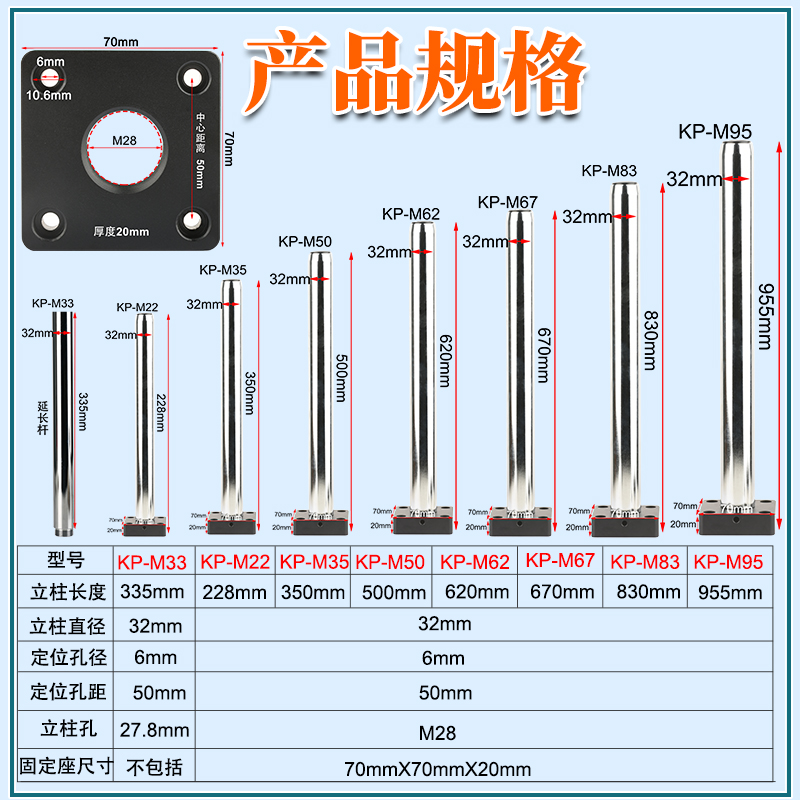 KOPPACE 光学显微镜平台支架 长度228mm-955mm 直径32mm 配有M6螺孔